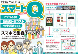 スマートQは、短納期、低コストでスマホサイトを作成できまた、効果的に実施するツールです。ぜひ、イベントの集客や運営にお役立てください。