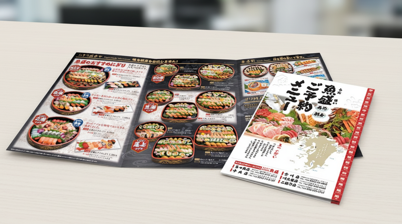 鮮度が際立つお寿司・お刺身ご予約メニューカタログ制作