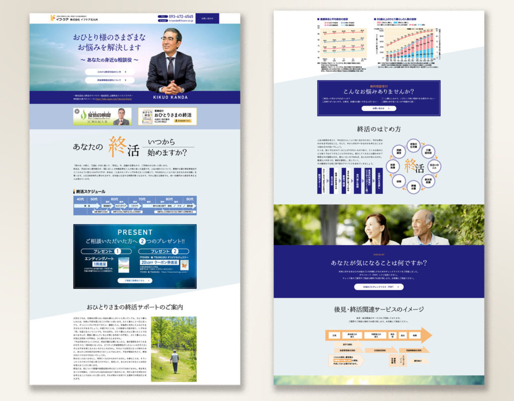 北九州市を中心に終活カウンセラー事業を展開されている株式会社イフケア様の、「終活カウンセラー事業の拡大」と「死後事務委任契約の認知度向上」を目的としたブランド構築をお手伝いいたしました。