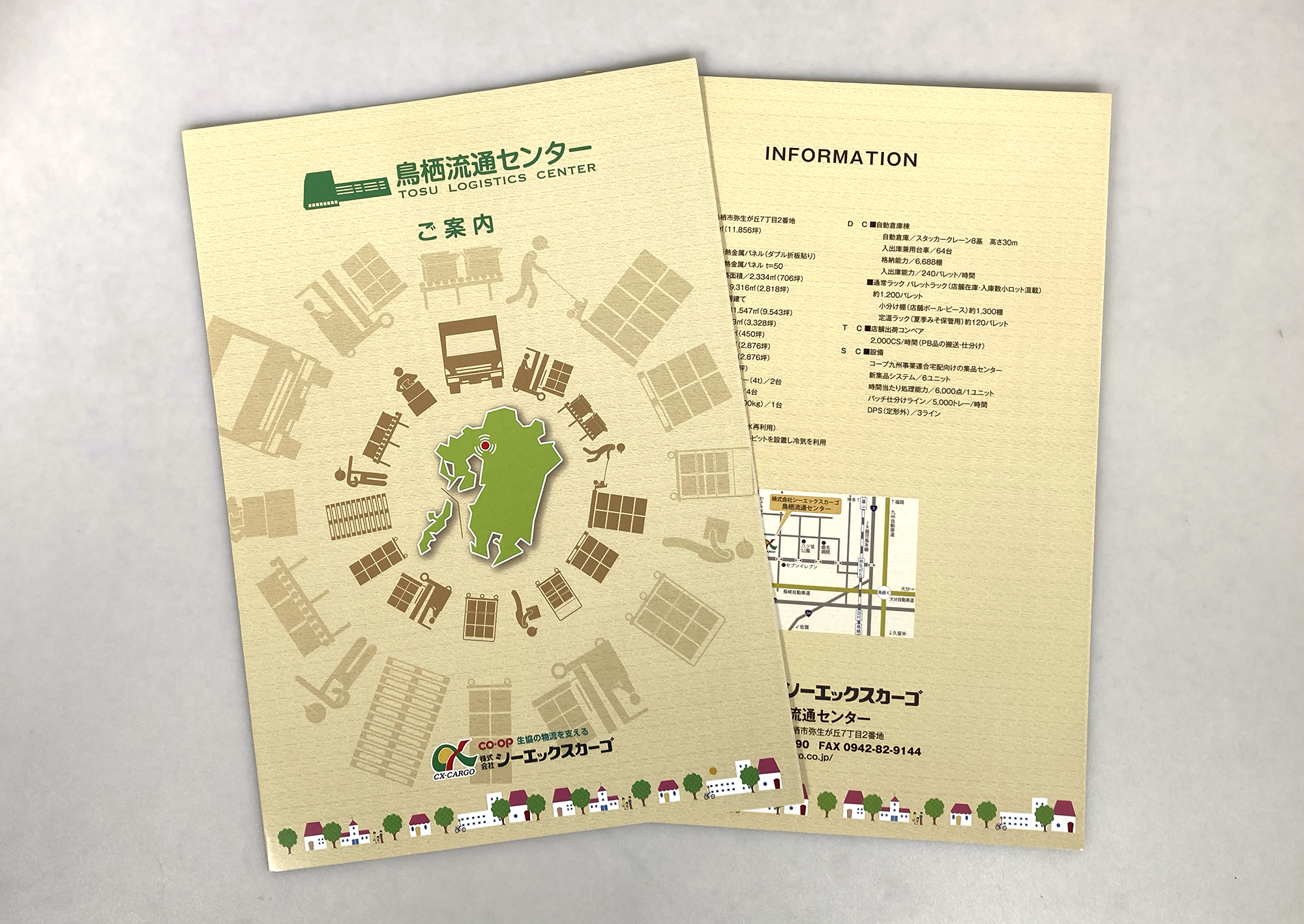 春先から多くの見学申し込みがあり、納品され早速使用していますが、まずはセンター長や説明する管理者から「説明しやすい」との喜びの声があがりました。見学に来られた組合員さんも、「カラフルな作りで見やすい」とパンフレットを食い入るように見つめ、こちらの説明にも熱心に聴いていただいています。説明する側、聴く側が共に良い効果を作り出しているようです。これからも我々の「想い」をしっかり伝えていきたいと思います。制作していただいた日広さん、本当にありがとうございました。