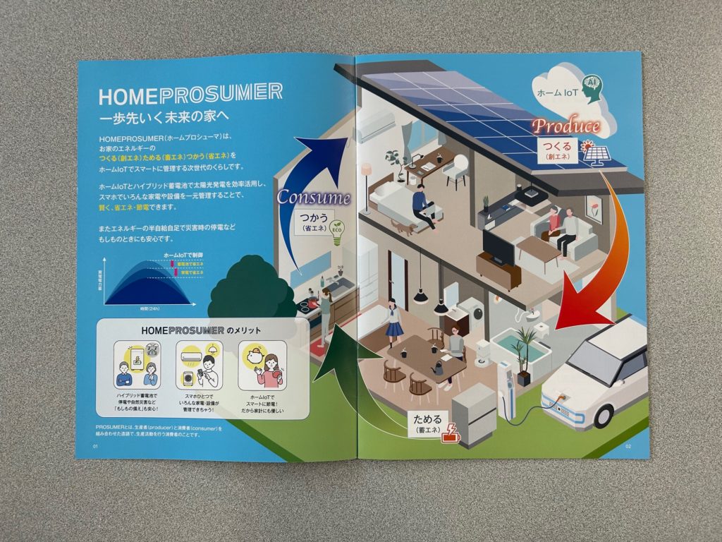 今回の製品カタログで重要な、HOMEPROSUMERのサービスを一目で分かりやすくイメージできるように、イラストを駆使して制作しました。    また、読みやすくするために文章量や文字サイズなど配慮しました。