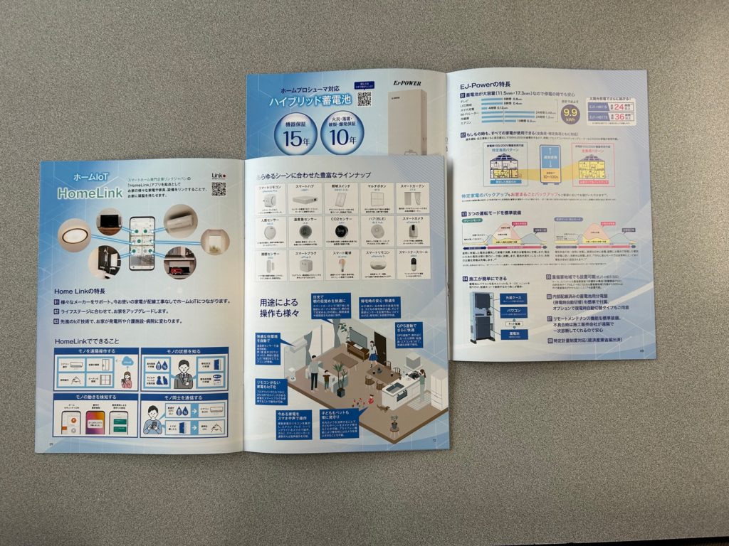 これまで九電テクノシステムズの方がそれぞれ製品案内をパワーポイントなどで作成し使用していましたが、デザイン性や利便性を重視した1つの冊子をご要望され、広告会社数社によるコンペを行い、弊社にて制作が決まりました。