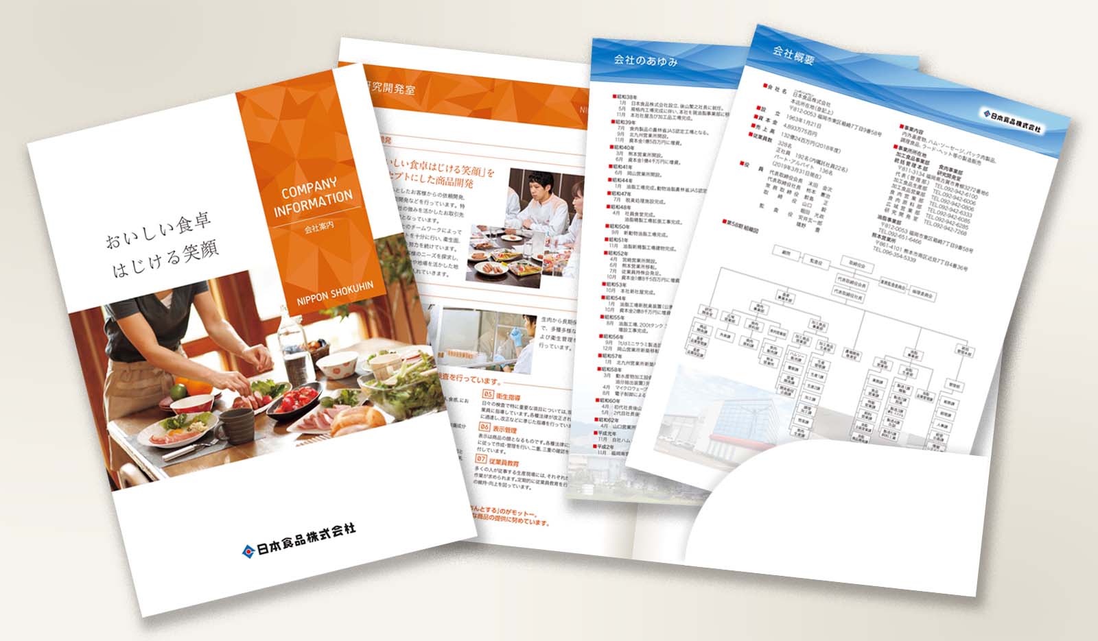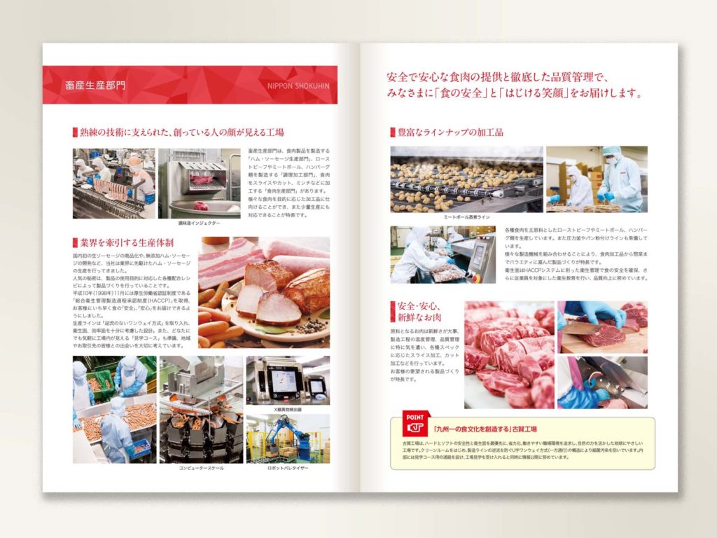 食肉製品を製造されている日本食品株式会社様より、会社案内の制作をご依頼いただきました。主なご要望は以下の3点でした。