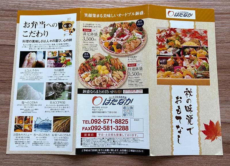 これまではDMとしてチラシを封筒に入れて配布されていましたが、今回ご提案したのは保存性の高い巻き三つ折りのメニューブックです。