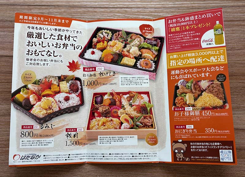 施設名:はたなか(宅配弁当)