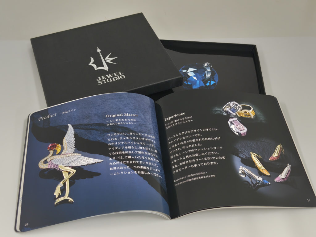 完成した作品集は、ジュエルスタジオ様のこだわりが詰まったジュエリーの輝きを忠実に再現するツールとなりました。高い印刷技術とデザインにより、作品の美しさが余すところなく伝わり、お客様に「見ているだけで幸せになる」という感動を提供することに成功しています。この作品集は、企業の信頼性を高めると同時に、ジュエルスタジオ様が大切にする想いを伝えるための重要な役割を果たしています。