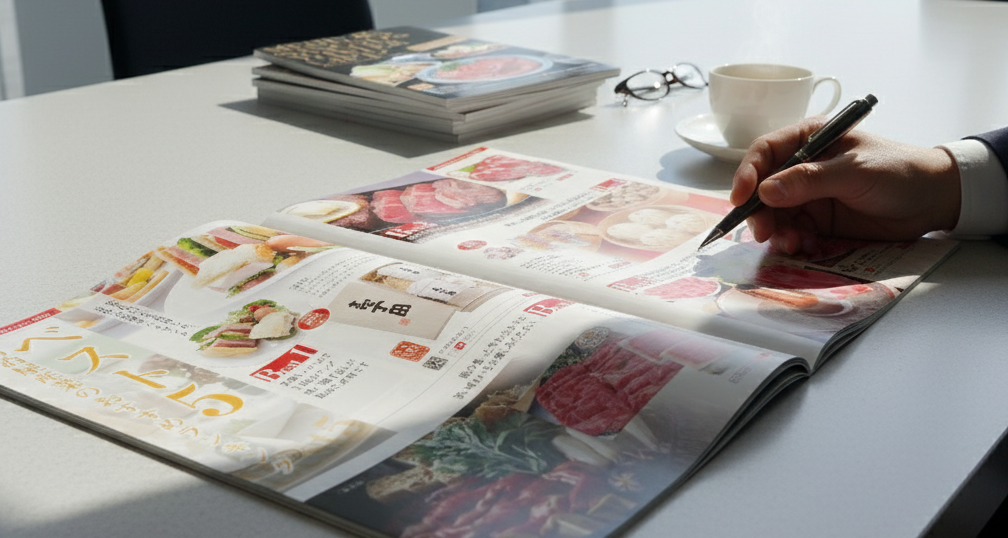 - 視認性の確保: 限られたページ数の中で、一つひとつの商品の情報が埋もれることなく、分かりやすく配置されていること。